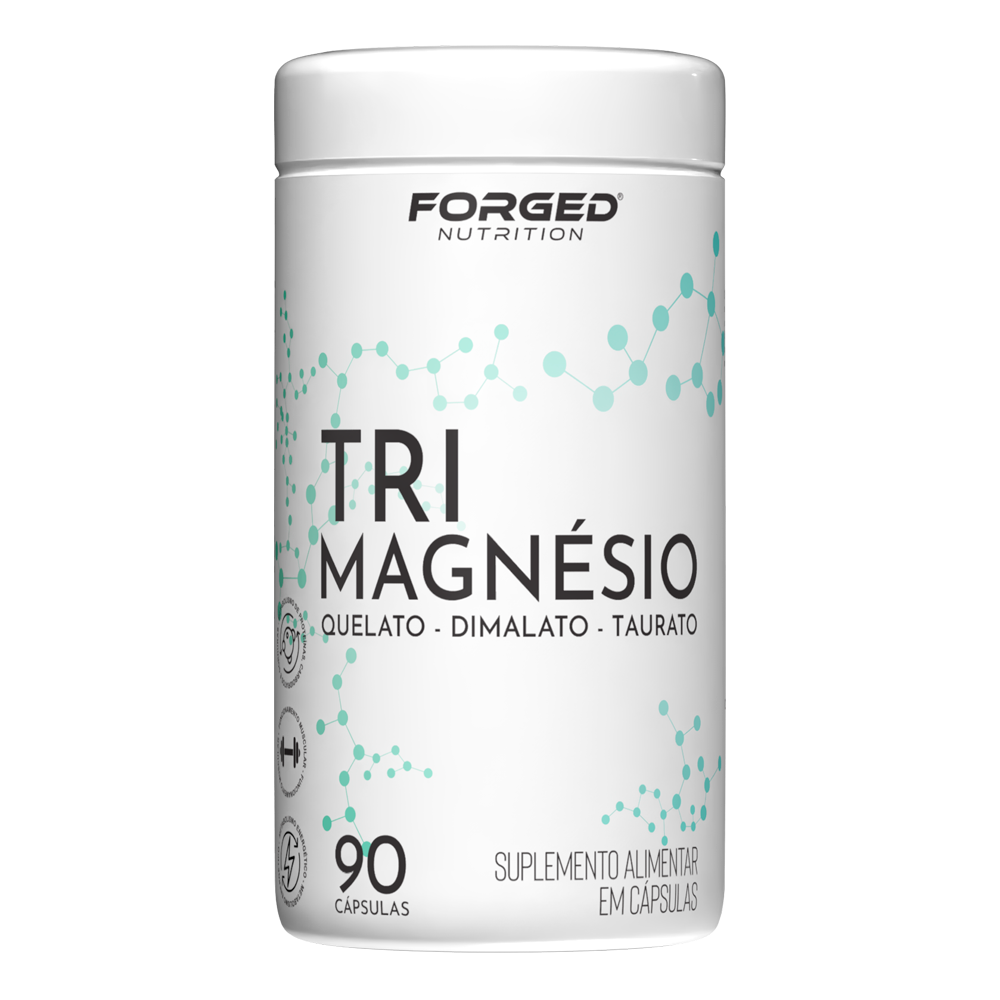 O Tri Magnésio da Forged Nutrition combina três formas altamente biodisponíveis de magnésio: Quelato (Bisglicinato), Dimalato e Taurato, oferecendo uma fórmula completa para suporte muscular, metabólico e neurológico.